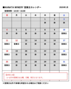 1〜2月は毎週土日祝日の営業となります。営業時間は10:00〜16:00です。
